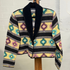 - Vibrant Southwestern woven design with yellow, turquoise, purple, and black