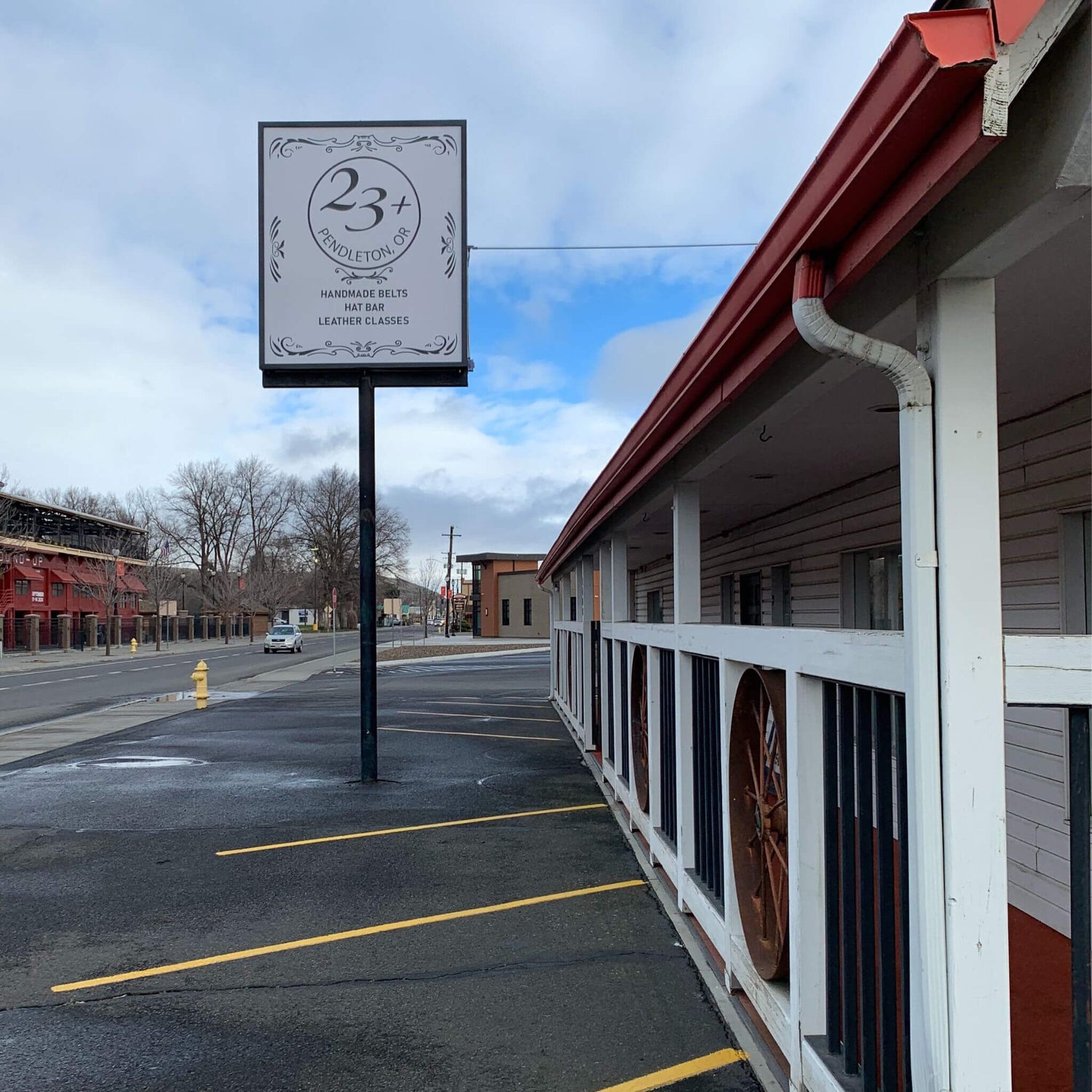 After being married, Marti and I moved to Pendleton where I started 23+ in a friends garage. Over the years the shop has migrated. Moving from the garage to a back workroom (no store front or windows) behind Joe’s Fiesta, the Mexican restaurant downtown. While there I helped supplement and build the business by taking on small orders and repair work from Hamley’s which was less than two blocks away. The short walk made it convenient for offering fast customer service.