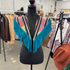 Vintage Fabric & Suede Fringe Turquoise Cape